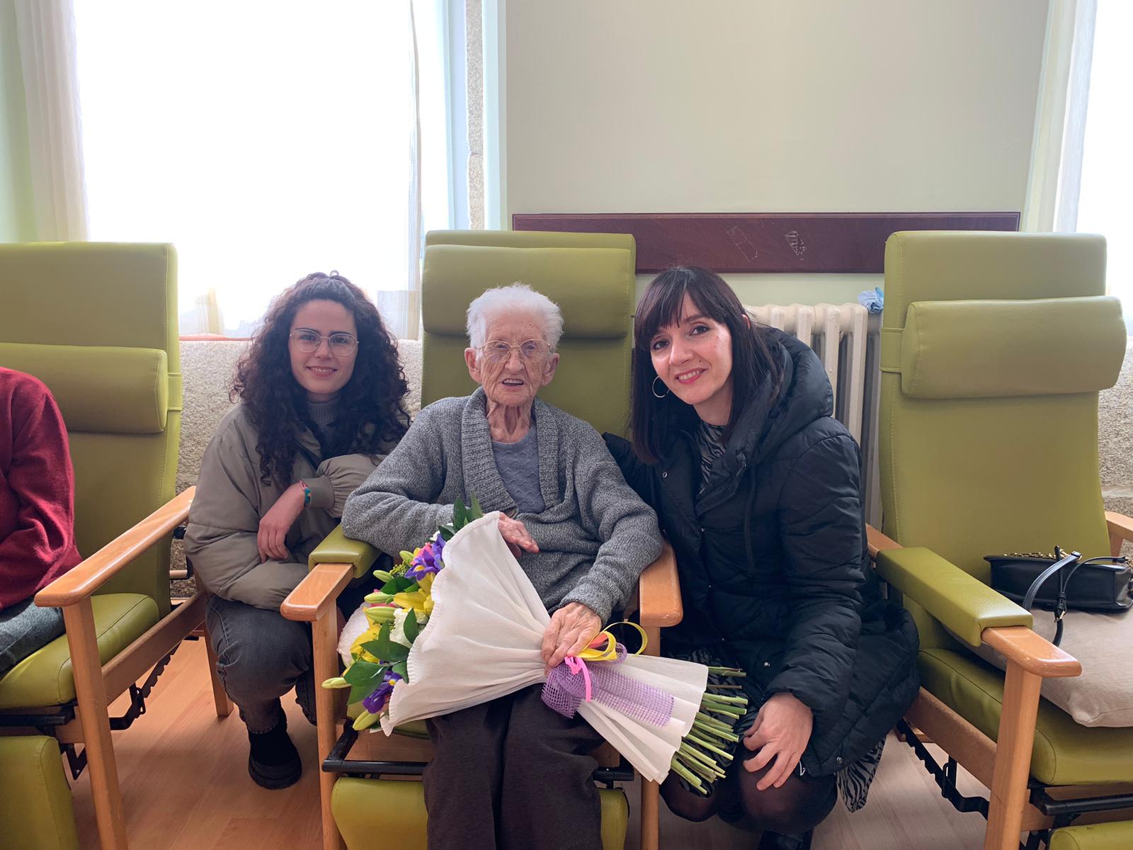 Marta Rouco achegouse ata o Hospital Asilo de Vilalba para agasallala cun ramo de flores e felicitala persoalmente