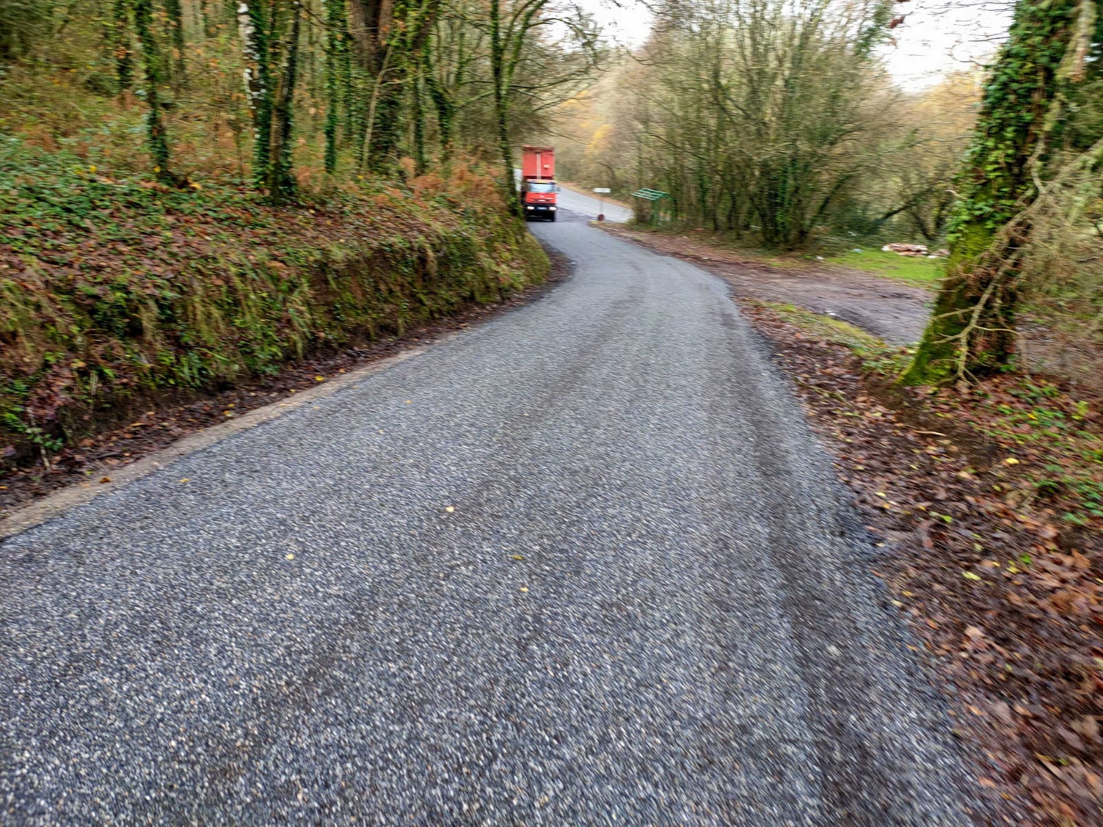 • A altura do P.K. 0+500 existe un punto baixo do perfil lonxitudinal da vía, donde se acumulan as augas de escorrentía en épocas de choivas abundantes ocasionando maiores danos sobre o firme polo que se levou a cabo un reforzo previo da capa base mediante aporte de macadam na marxe dereita da actuación. Así mesmo, tamén se colocou unha obra de drenaxe transversal (Tubo Ø400 mm) complementaria ás existentes.