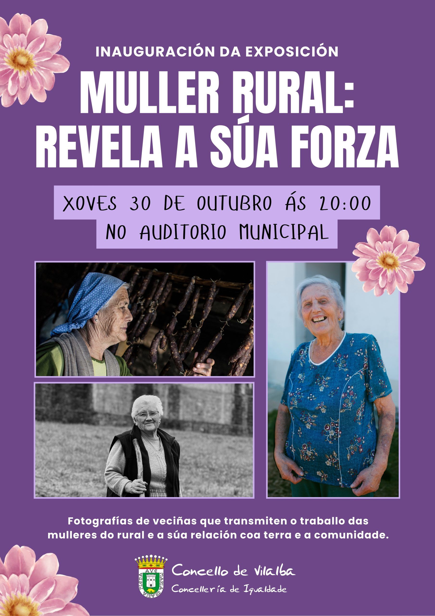 A CONCELLERÍA DE IGUALDADE INAUGURA ESTE XOVES, 30 DE OUTUBRO, A EXPOSICIÓN “MULLER RURAL: REVELA A SÚA FORZA” NO AUDITORIO MUNICIPAL